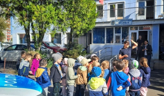Polițiștii din cadrul Poliției Municipiului Brașov- Secția 5 de Poliție au fost gazdele unui număr de 25 de prescolari, ocazie cu care celor mici le-a fost prezentată meseria de polițist și s-au familiarizat cu o parte din dotările forțelor de ordine.
